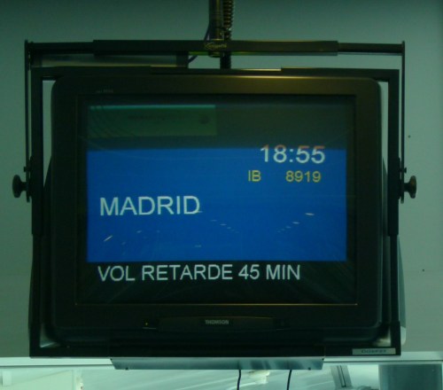 On finit par décoller du sol français. Arrivés à Madrid-Bajajas , on lit sur un écran de télé :