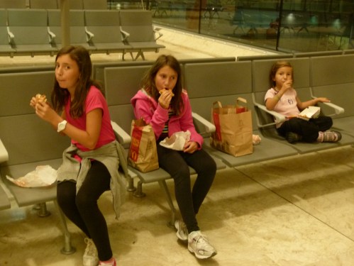 A) Iberia nous demande d’attendre dans l’aérogare en expliquant qu’un avion de remplacement pourrait décoller dans la nuit. Finalement, on aura dormi toute la nuit sur les sièges du hall H avec un départ à 9h de Madrid suivi d’un vol d’un jour.