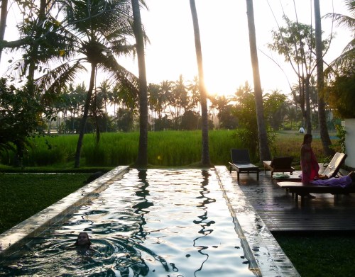 Après la course en Afrique et le rythme trépidant de Hong-Kong, nous voici à Bali et plus précisément à Ubud où nous avons loué une petite villa pour la semaine, histoire de se reposer un peu. La maison est située à Lothunduh, dans un village traditionnel d’agriculteurs, aussi sommes-nous au milieu des rizières, un peu à l’écart de l’animation de Ubud qui représente à Bali un lieu très fréquenté par les touristes, mais qui a aussi réussi à conserver ses traditions.