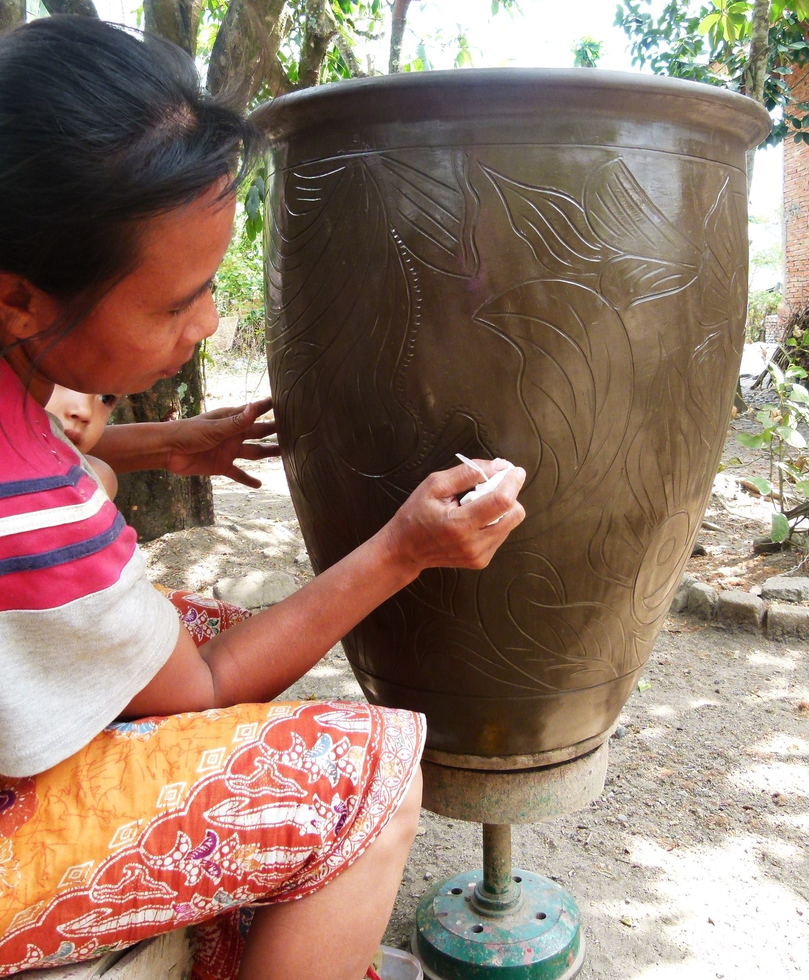 Nous décidons donc de poursuivre vers le sud de Lombok, à Kuta, réputé pour son sable blanc et fin. Nous en profitons pour visiter encore quelques temples hindouistes (il y en a, même si l’île est majoritairement musulmane) ainsi qu’un village de potiers de la tribu Sasak. Une gentille villageoise nous fait traverser un village très pauvre pour aller voir un couple travailler sur des jarres qu’on leur commande depuis l’étranger. Ici, tout est fait à la main, même le tour fonctionne manuellement. Les enfants n’osent pas essayer, malgré les propositions des potiers. Dommage.