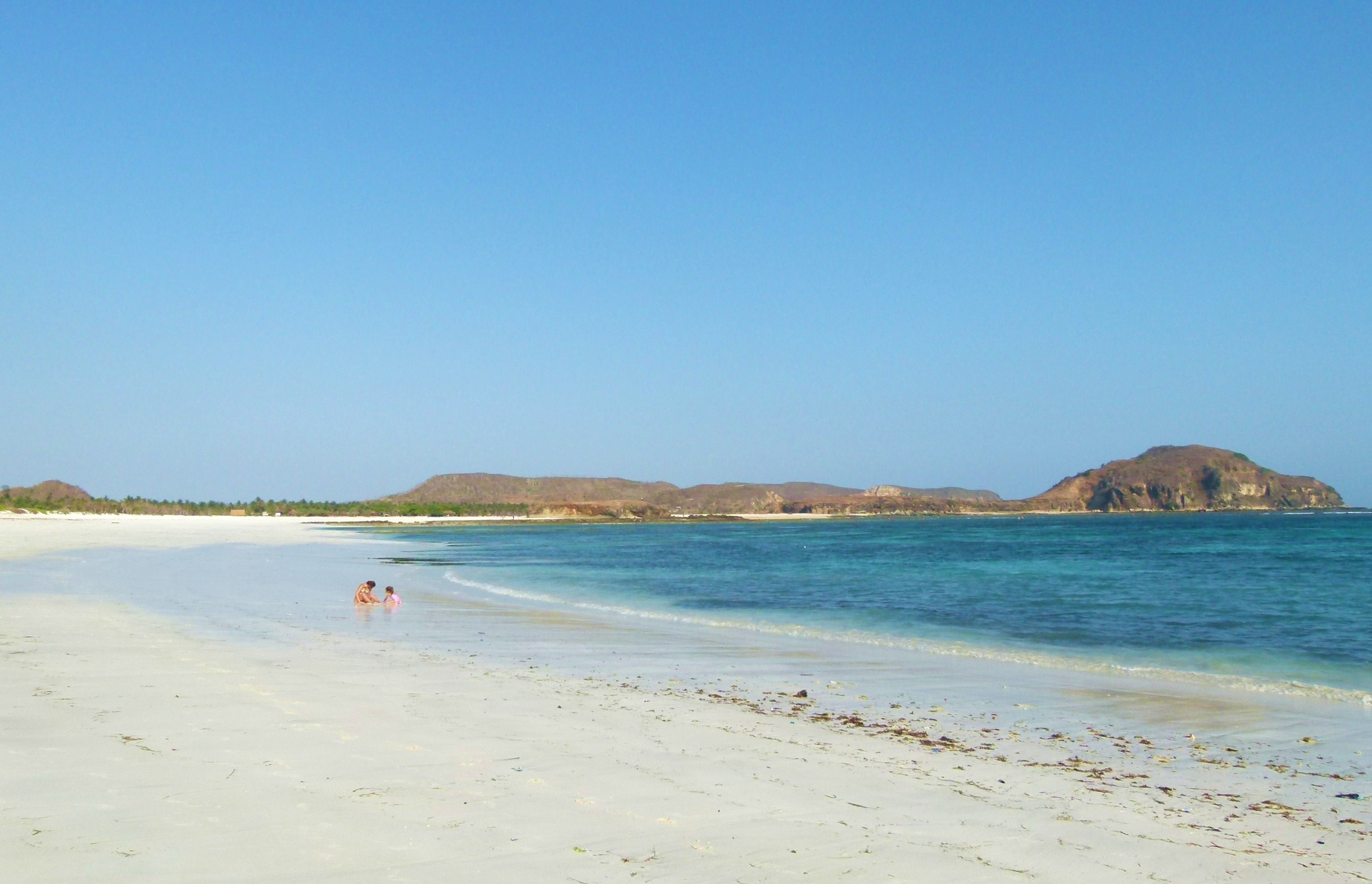 Nous voilà enfin à Kuta Lombok, qui n’est pas vraiment un village mais une route bordée d’échoppes précaires pour touristes surfeurs et de quelques bungalows. Les villageois vivent sur la plage dans des cabanes qui s’apparentent à des bidonvilles, vont chercher l’eau au puits et vivent des quelques ventes aux touristes (sarongs, fruits, DVD…). Nous y découvrons de belles plages.