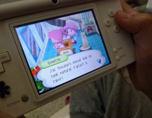 M : C’est Lena qui joue à la DS, à Animal Crossing. L’autre, ce sont des bambis, au zoo. Mais on n’a pas vu les reptiles parce qu’après il a plu.