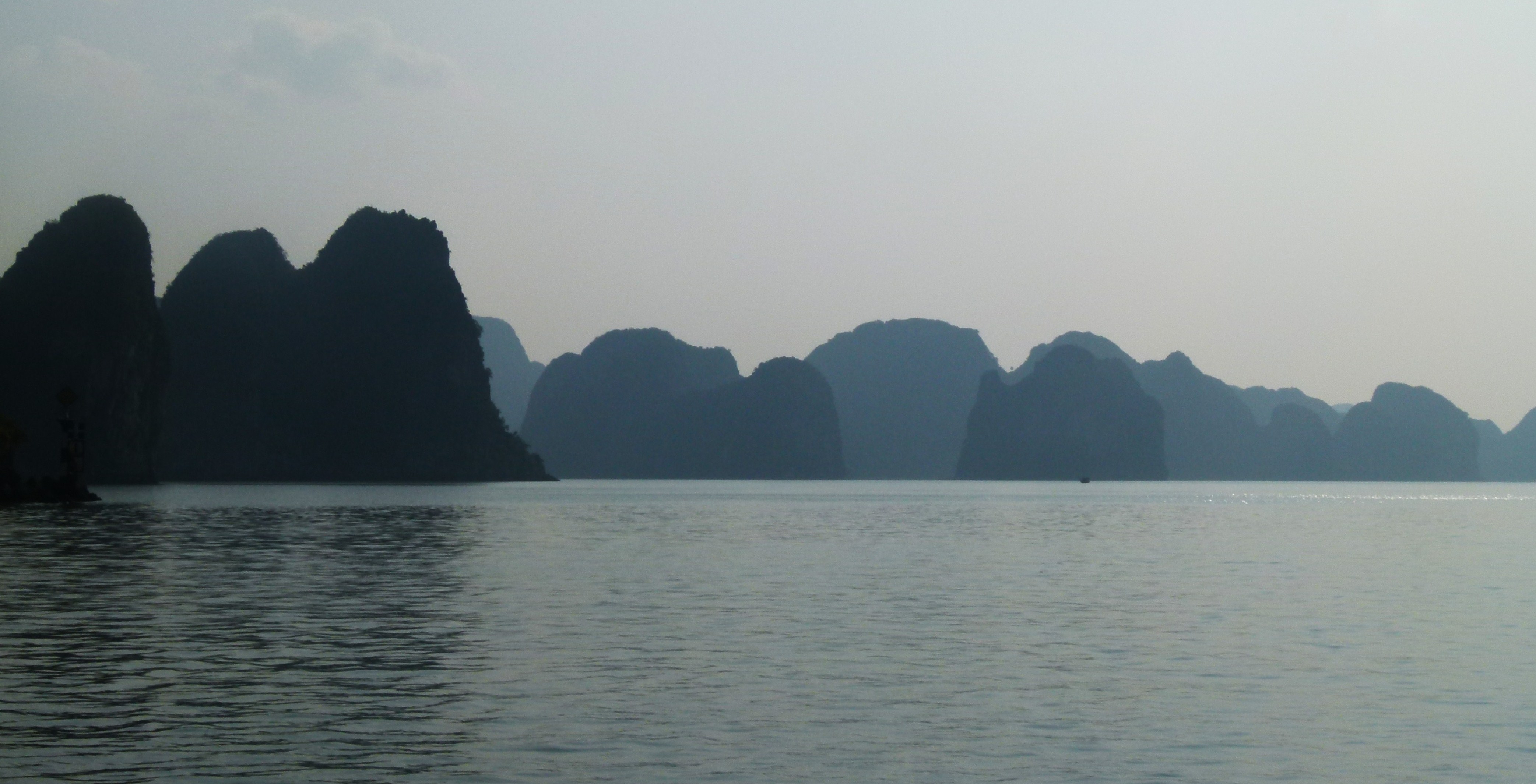 Et là, on peut enfin apprécier la beauté de l’une des plus belles baies du monde : un temps de rêve, une mer vert émeraude, des centaines d’îlots qui apparaissent les uns derrière les autres, quelques rares bateaux de pêcheurs et d’improbables villages flottants.