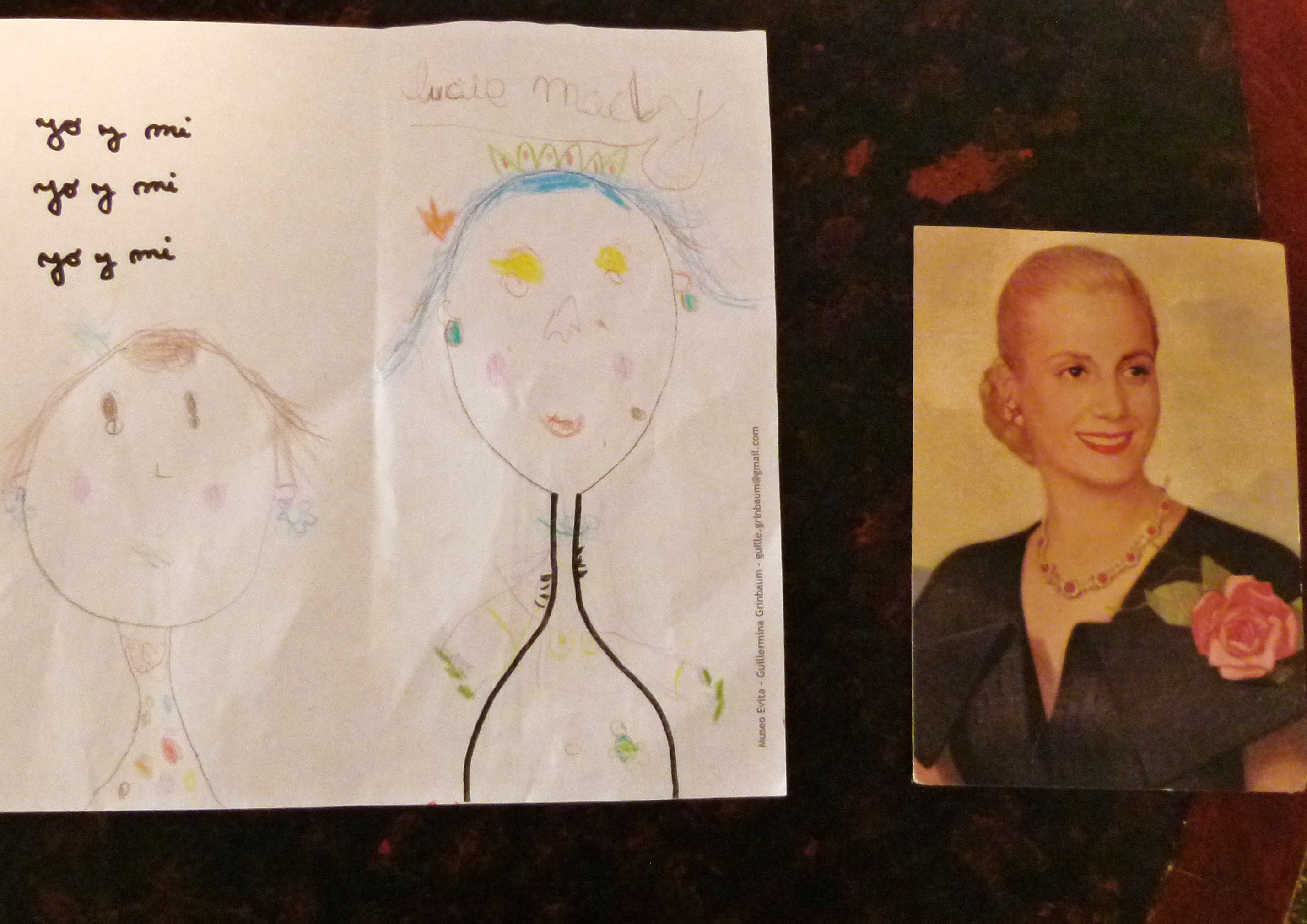 Mady semble assez fascinée par une image d’Eva Peron se trouvant sur une carte postale récupérée au musée éponyme. Dans ce musée, elle a vu les belles robes d’Evita. Elle a aussi compris que Eva Peron avait fait beaucoup pour les pauvres en offrant des jouets aux orphelins dans les dispensaires qu’elle a fait construire à la  fin des années 40, lorsqu’elle était directrice de la Fondation sociale, dans le gouvernement de Juan Peron, son mari.