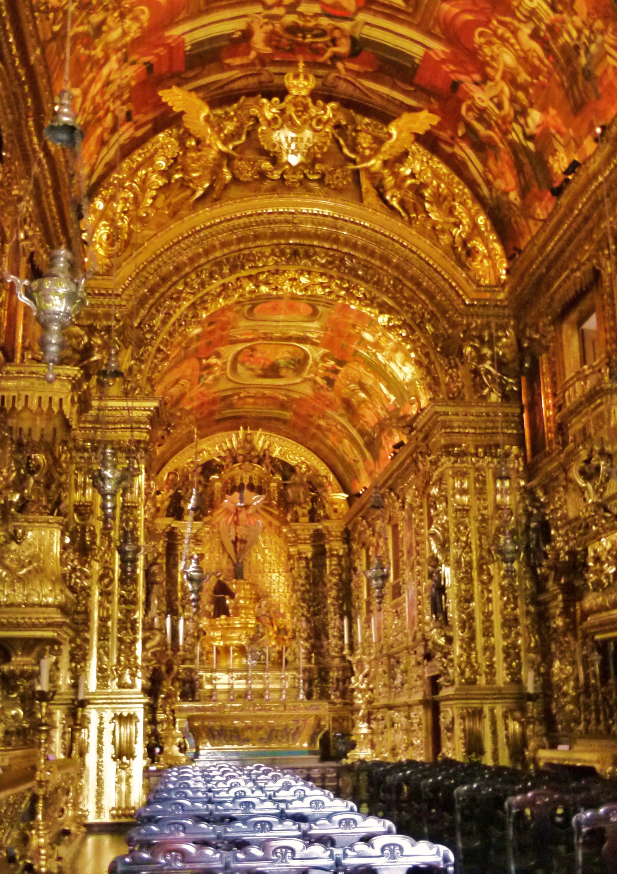 Dans cette ville, les églises baroques sont nombreuses. Voici l’intérieur, de l’Igreja Sao Francisco, couvert d’or du sol au plafond. Ils aiment l’or dans ce pays !
