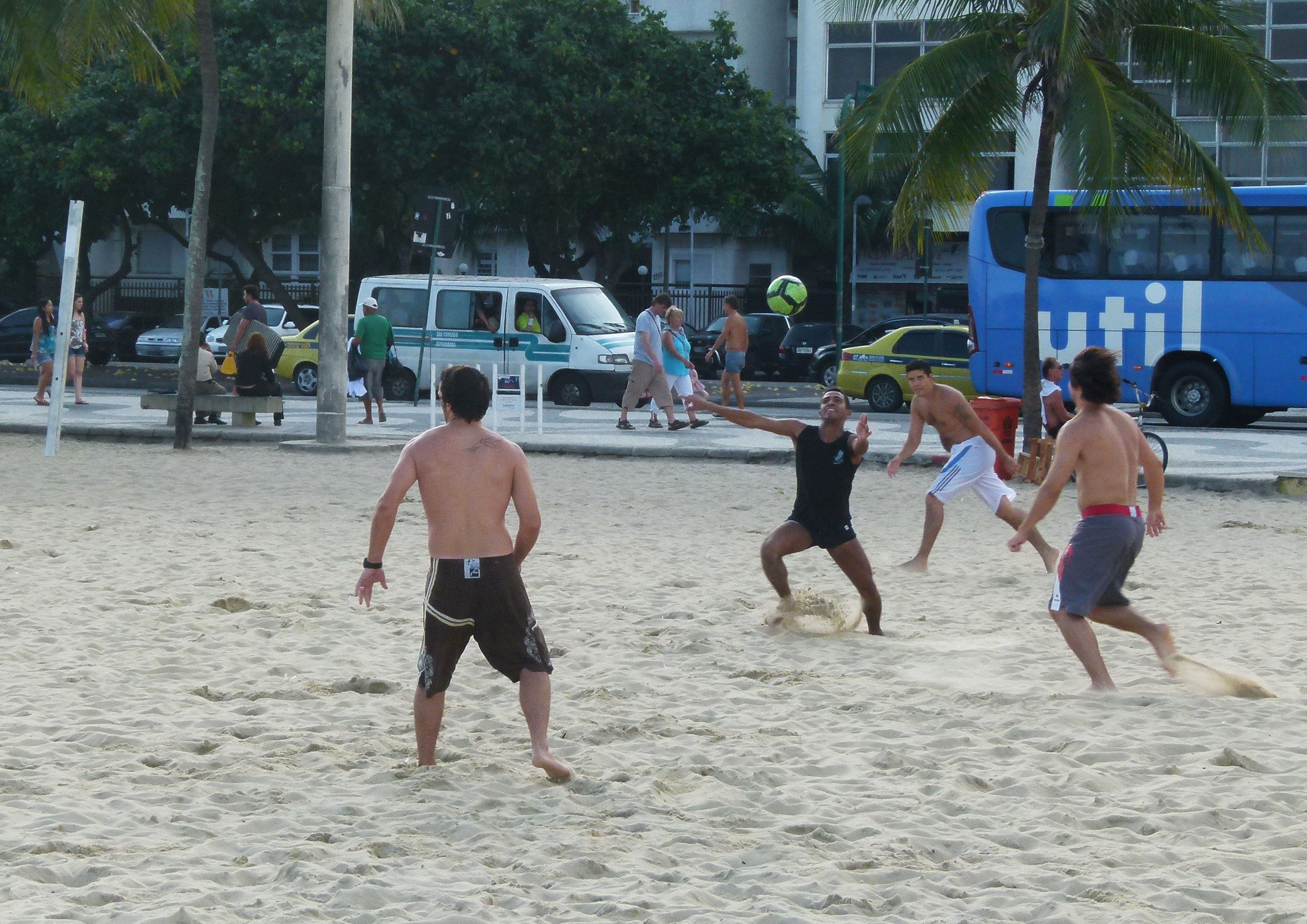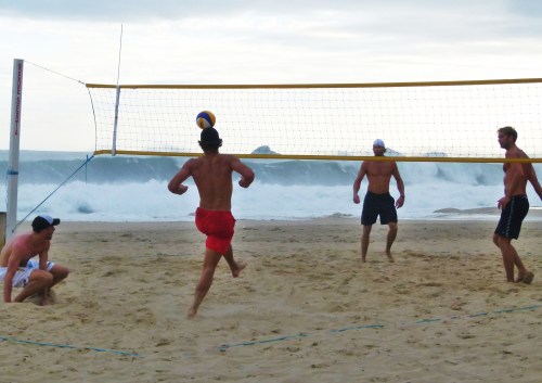 Sur ces plages, on y pratique des sports de ballons ronds, avec les pieds ou les mains, mais surtout avec les pieds.