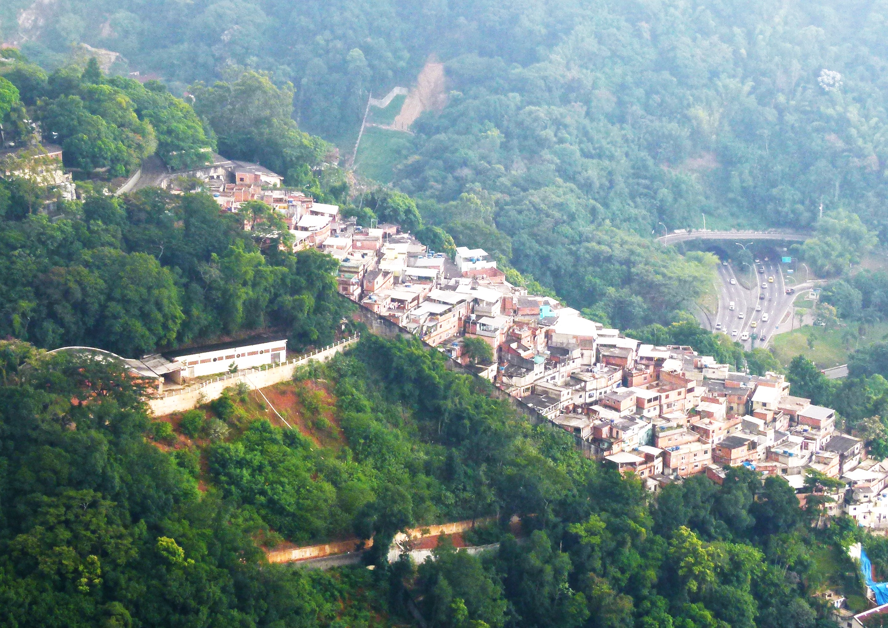 Sur les flancs de chaque morros, s’accroche les constructions urbaines précaires des plus déshérités, les favelas.