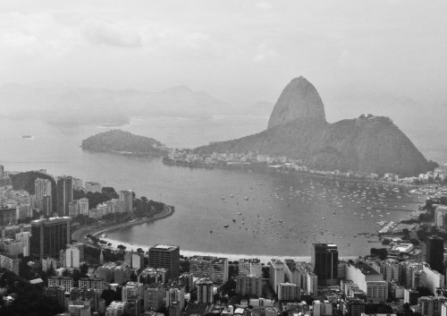 En noir et blanc, voilà une photo du « Pao de Açucar » (en portugais svp) dressé derrières la baie de Botafogo.