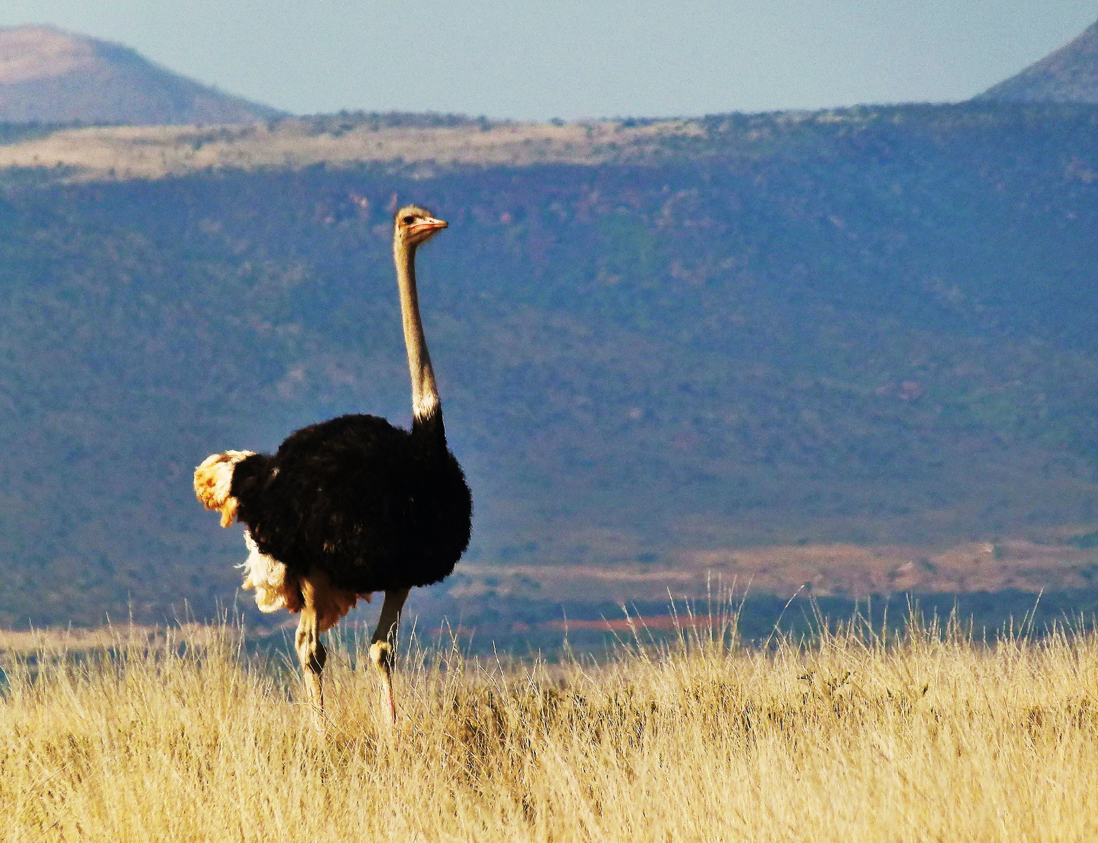 M : « Une autruche d’Afrique du sud avec de belles plumes noires, et on a fait la course avec elle. »
