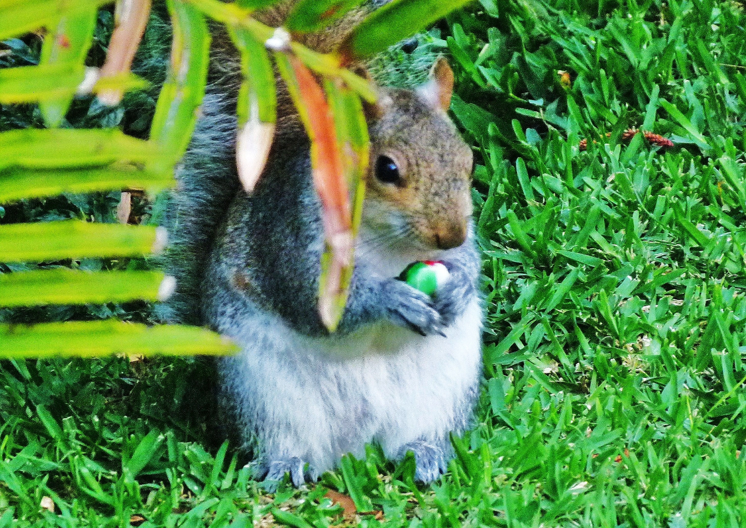 M : « Dans un jardin d’une ville d’Afrique, nous avons joué avec des écureuils. On leur a donné des bonbons à la menthe et ils les ont mangés. »