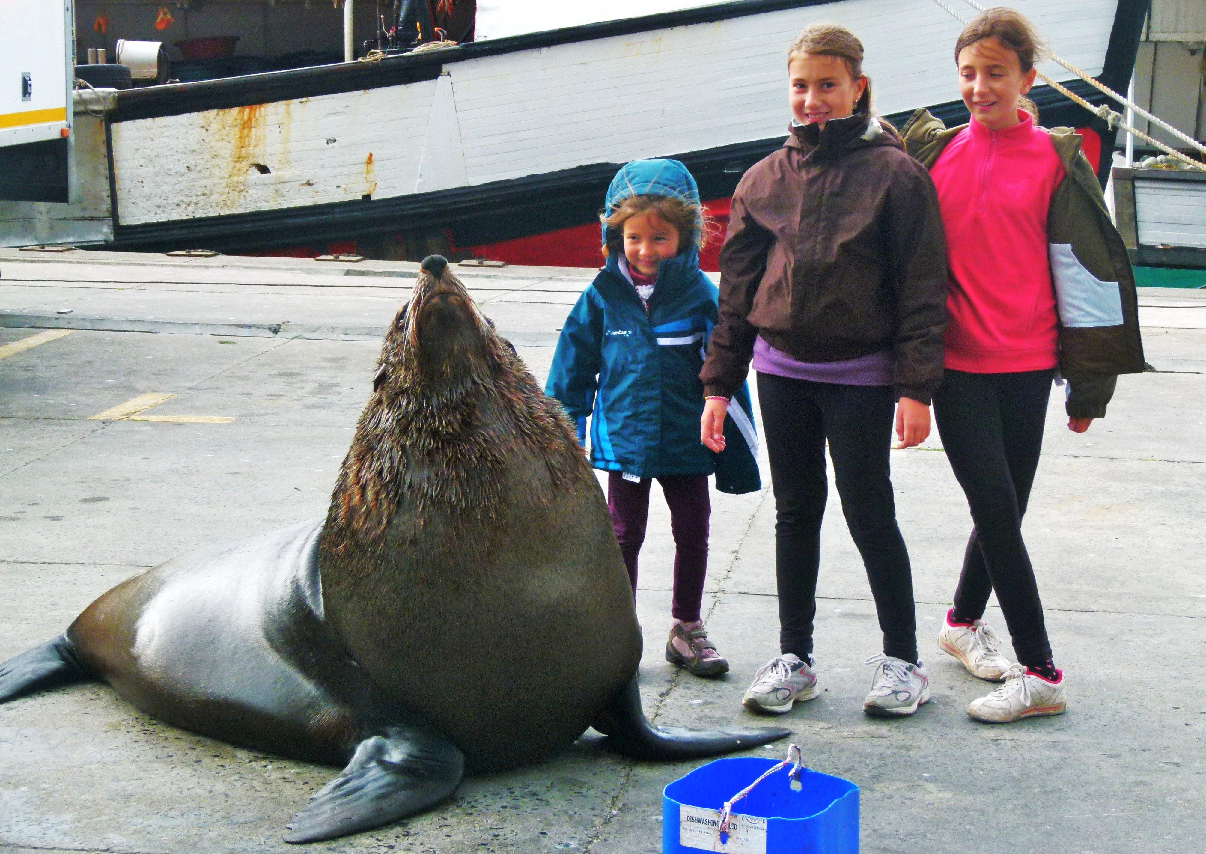 M : « C’est une baleine d’Afrique du sud, mais celle-là nous l’avons vue depuis la falaise et pas depuis le bateau. Avec nous, il y avait le crieur de baleines. »