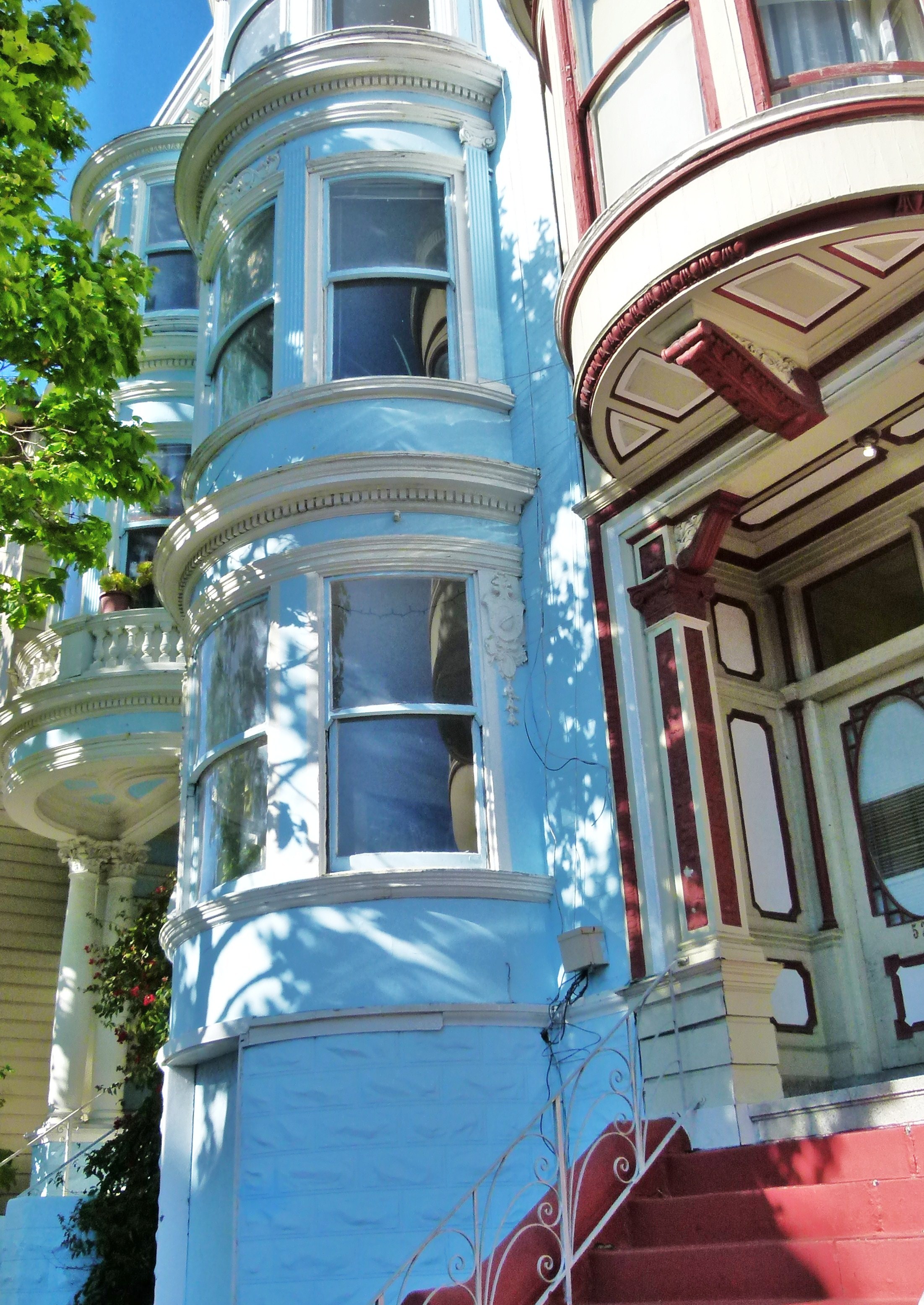 A San Francisco, nous apprécions en premier lieu les belles façades victoriennes, comme celle de cette maison bleue, adossée à la colline, on y vient à pied, on ne frappe pas, ceux qui vivent là, ont jeté la clé.