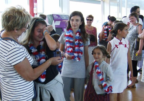 Une demi-heure après, nous sommes accueillis « en héros » à la gare TGV par une trentaine de proches. Tout le monde s’embrasse. Nous avons des colliers fleurs tricolores autour du cou, des larmes dans les yeux et la voie coupée …