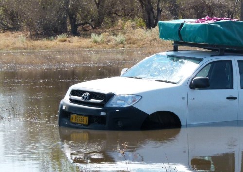 Notre plus grosse galère (en fait la seule) : notre 4×4 de location bloqué dans une marre de l’Okavango (Botswana) durant … 36 heures …