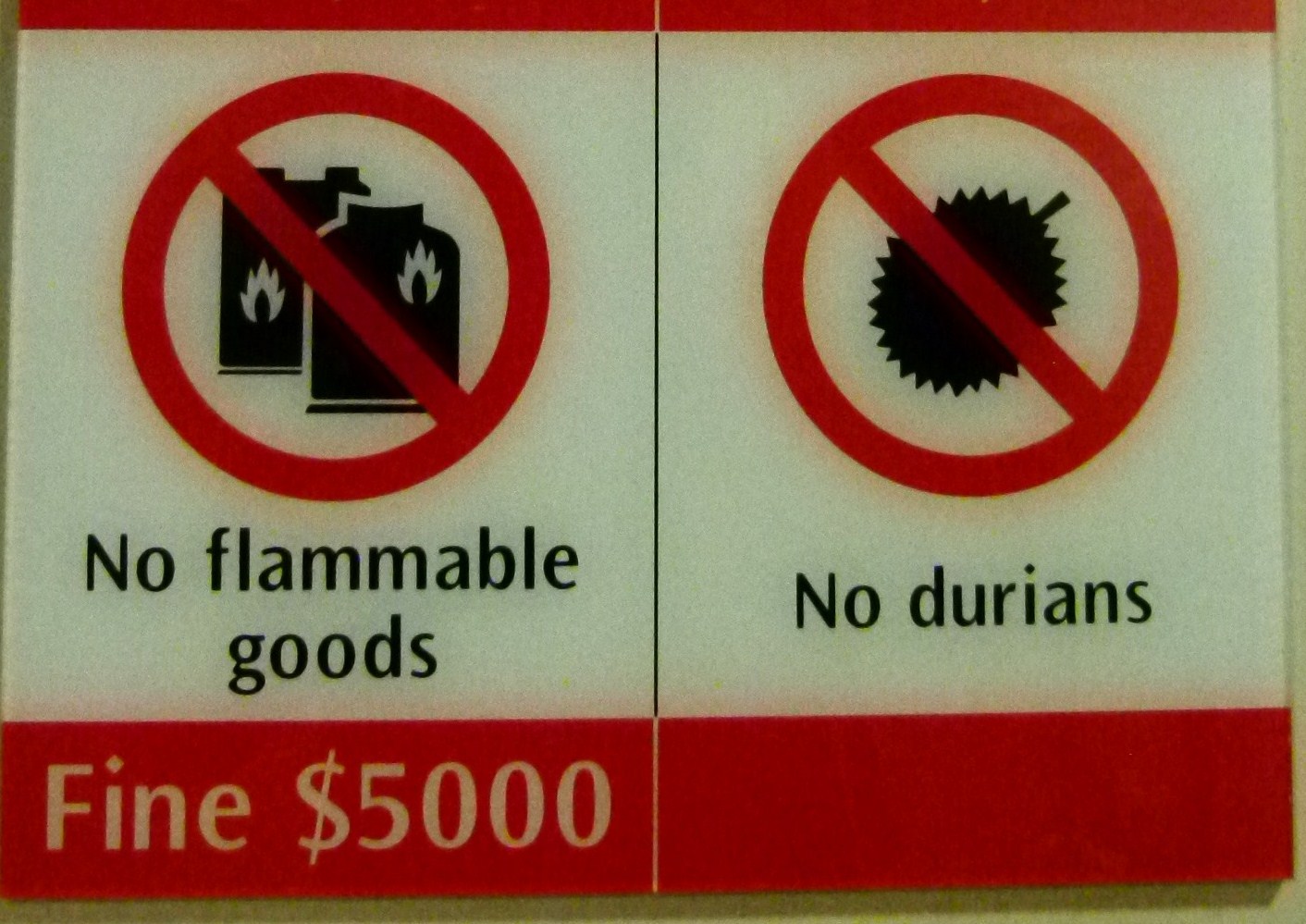 Ce qui est interdit de transporter dans la cabine d’un avion  en Indonésie  ou dans le métro de Singapour : un durian (fruit tropical à l’odeur … caractéristique).