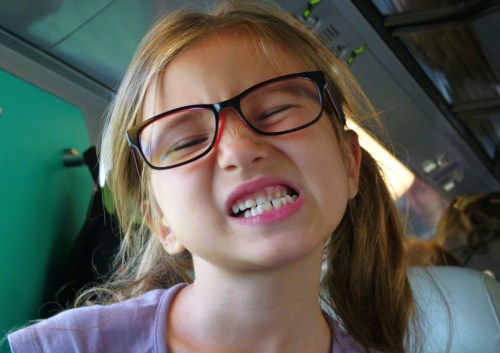 Mady, à six ans, vit l’instant différemment. Sa joie est plus maîtrisée. Elle pense à me prendre l’appareil photos et entame une collection de joyeux portraits de gare …