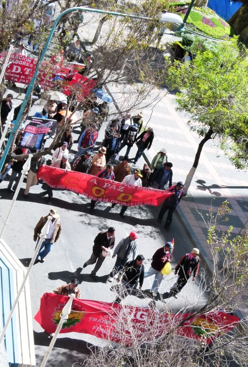 Nous arrivons le 1er Mai à La Paz. La population défile devant nos fenêtres. Tiens, c’est la fête du travail, ici aussi.