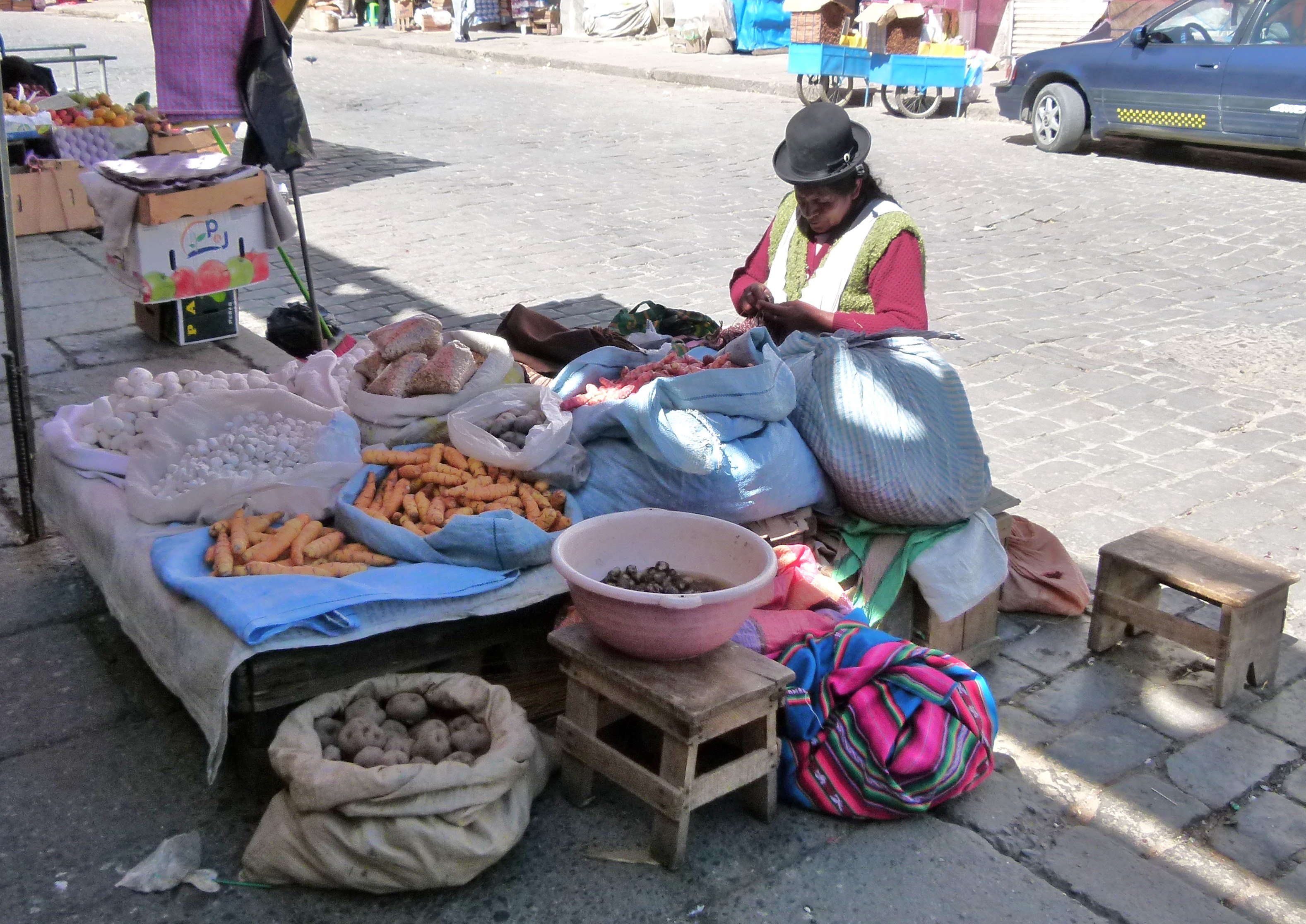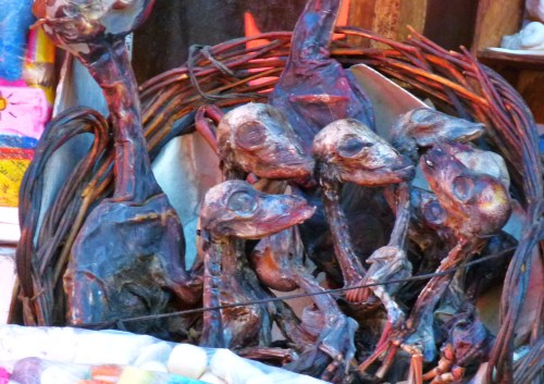 Nous traversons plusieurs marchés dont celui de la sorcellerie où l’on trouve des fœtus de lamas destinés à être enterrés sous les maisons des jeunes couples afin de leur apporter prospérité.