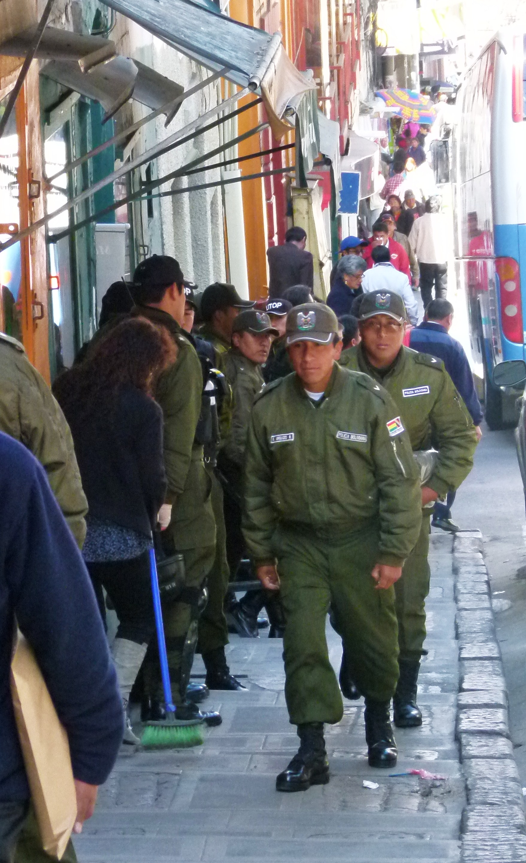 Finalement, le bus s’arrête à 6h30, à quelques centaines de mètres de la gare routière de La Paz, sous prétexte qu’il a un problème. On descend précipitamment, on récupère nos bagages, intacts. Ce bus aurait-il transporté des marchandises illicites qu’il ne fallait pas débarquer devant tout le monde ?