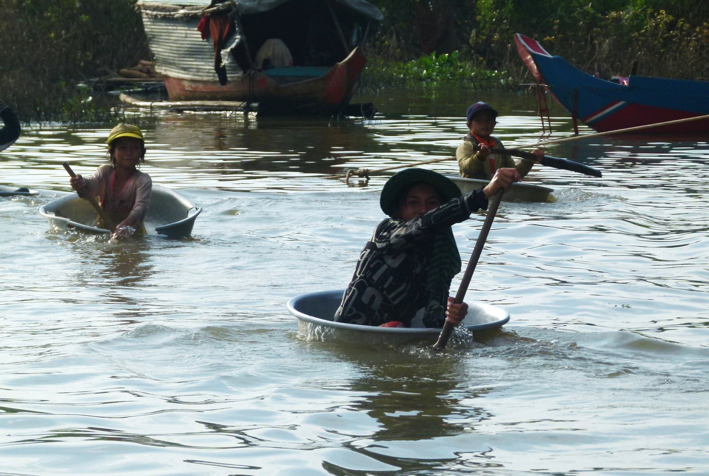 Siem Reap, c’est aussi très proche du Tonlé Sap, immense lac (et fleuve) dont le volume quadruple au cœur de la saison des pluies. Pour plus de précision géographique, Fred préciserait que le Tonlé Sap se jette dans le Mekong, et que son cours s’inverse une fois par an, agissant ainsi comme un récupérateur des hautes eaux du Mekong. Sur ce lac vivent des villages flottants de pêcheurs, qui se déplacent au gré de la montée des eaux, puisque leurs seuls revenus sont issus de la pêche.