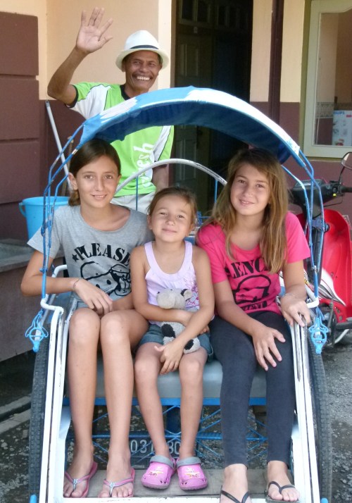Elles se sont bien rendu compte de la tendance des Indos à tenter de nous arnaquer sur les prix. Heureusement leur papa est là pour les recadrer.