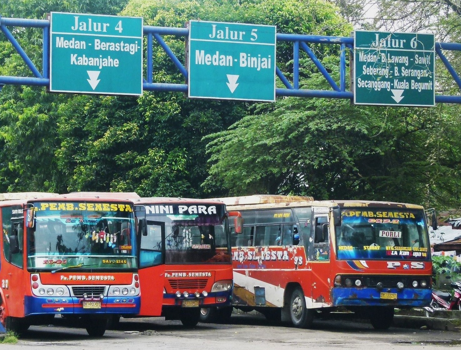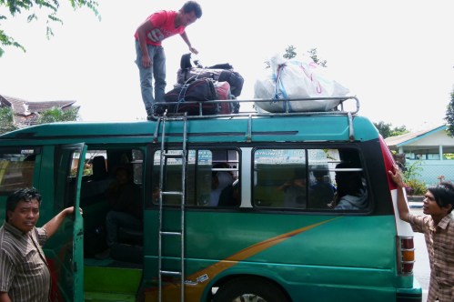 C’est ici que nous avons testé le plus grand nombre de moyens de transport différents : train, bus, ferry, minibus, becak, scooter, barque :