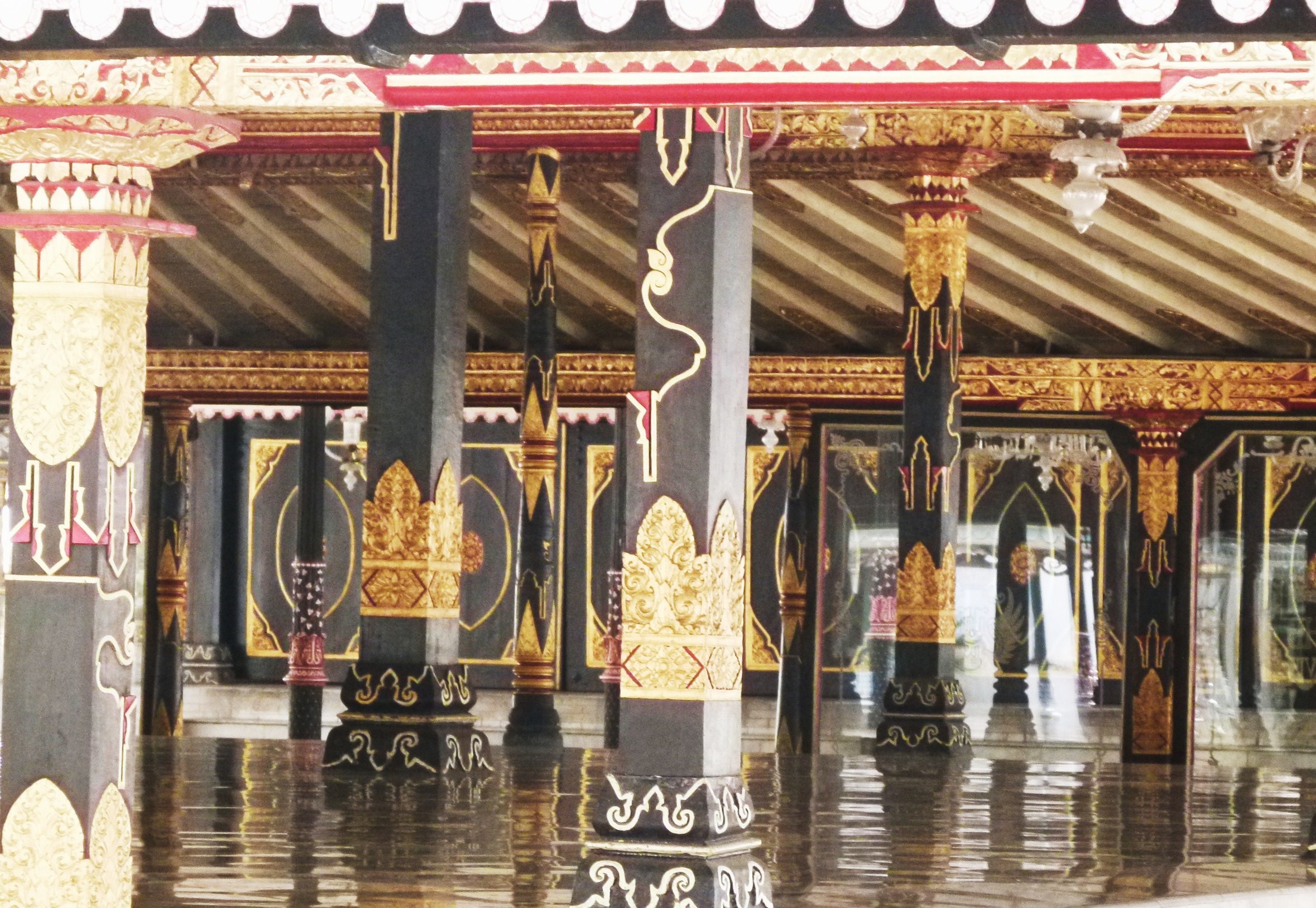 Après Surabaya, direction Yogjakarta, par le train, en classe executive : c’est la seule dans laquelle il est interdit de fumer. On bénéficie de la clim, mais attention, elle est tellement forte qu’on peut louer des couvertures ! Et 5h30 pour faire 320 km : on regrette notre TGV. A Yogya, nous visitons le Kraton (palais du sultan).