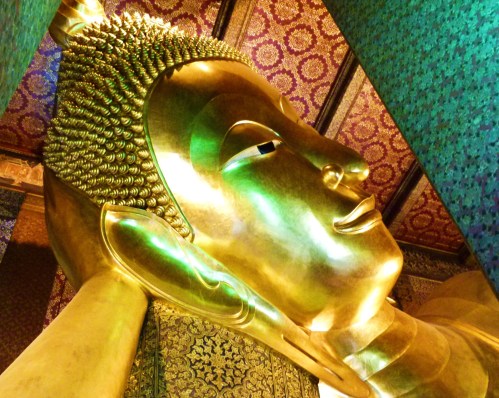 **** A Bangkok, un bouddha, grand, beau , bronzé et allongé …