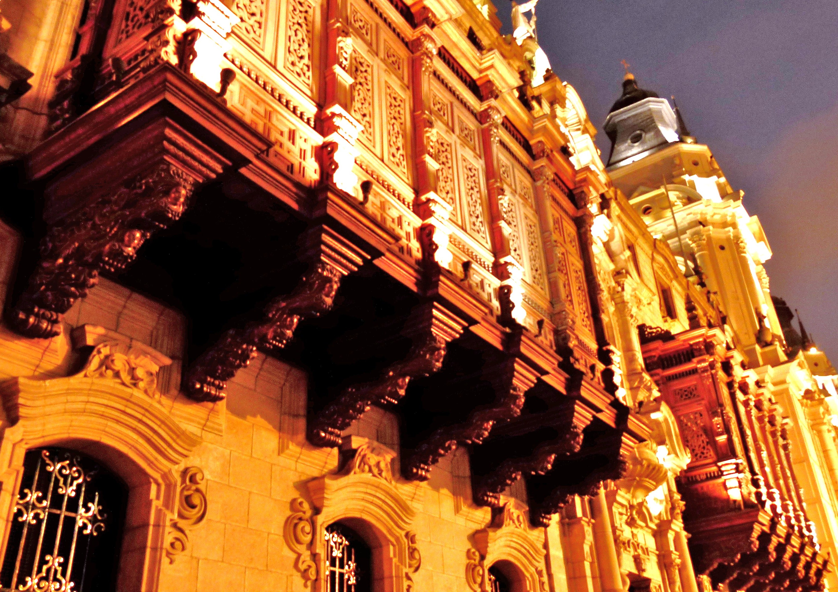 Et voici Lima, capitale du Pérou. Elle est belle n’est-ce pas la façade de la cathédrale, lors des illuminations nocturnes ? Le baroque liménien est un des trésors d’architecture de la ville …