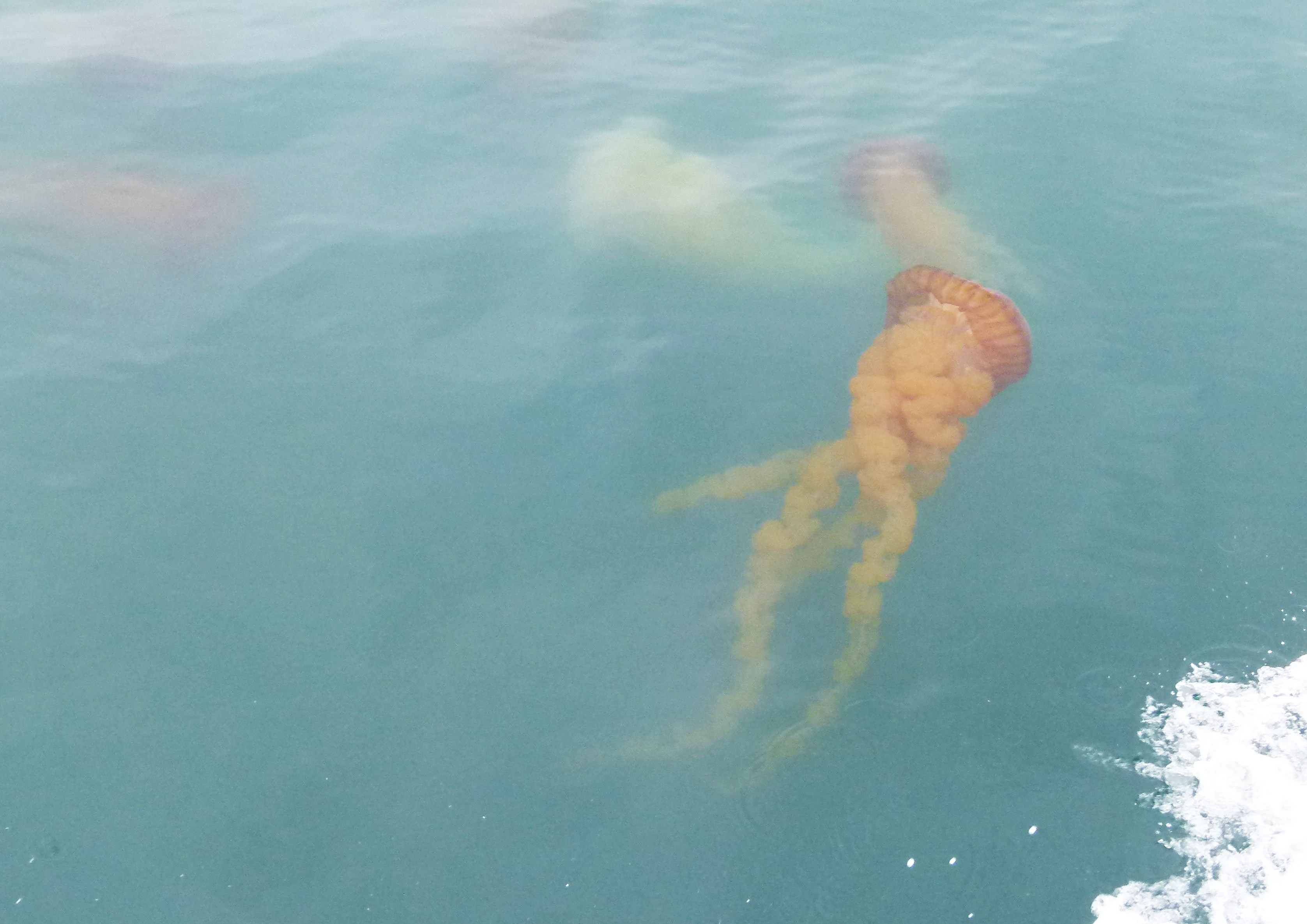 Le tour que nous achetons prévoit de nous emmener voir les animaux marins de  l’île Palomino. Nous sommes seulement neuf touristes sur le bateau pour cette excursion de quatre heures. Et pas d’autres bateaux en vue. Sur le trajet, des centaines de méduses se laissent dériver dans les eaux de la côte. Notre guide Jésus nous explique : « la pullulation des méduses est assez exceptionnelle et il faut savoir qu’entre 15 et 19° C, la température de l’eau est anormalement élevée pour la saison. »