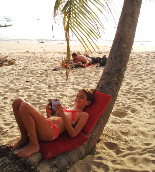 – Et le soir mes copines retrouvent leur chambre, leur bon lit, leur canapé, leur télé, alors que moi, depuis le début du voyage, j’en suis à 80 lits différents, rarement confortables, toujours partagés avec mes soeurs, que ce soit dans des hôtels, des backpackers, des appartements, des tentes, des cases, des camping-car ou des bungalows.