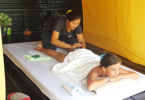 – Bon, je ne travaille pas beaucoup chaque jour (pas de devoirs le soir), mais en revanche, mes parents ne m’accordent aucune vacances. Je n’ai eu que quelques jours de repos à Noël à Koh Lanta et j’en ai profité pour me détendre.